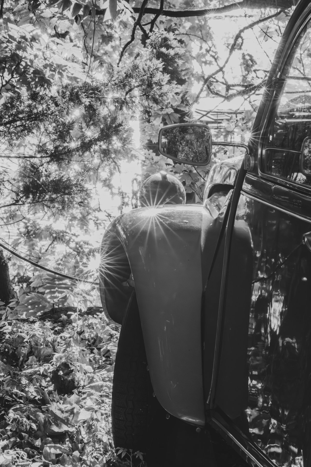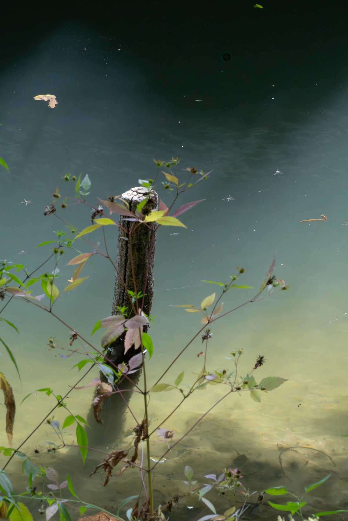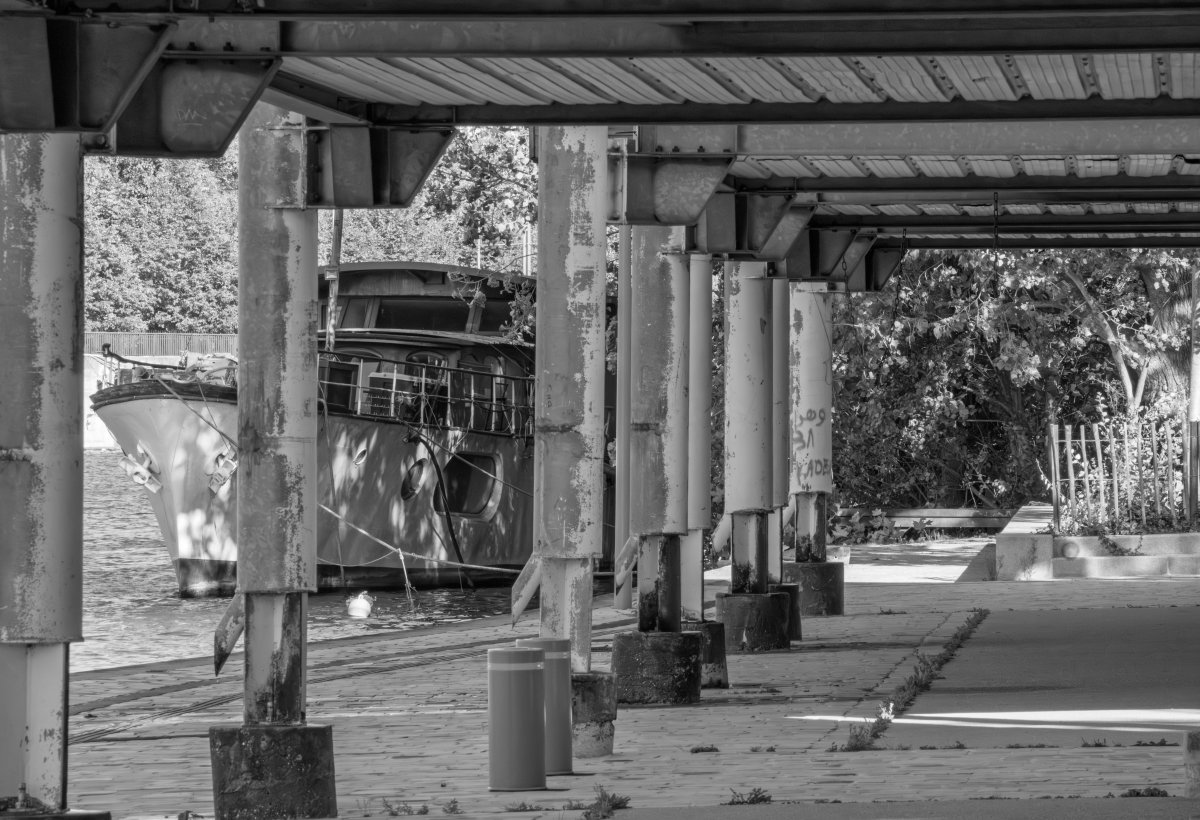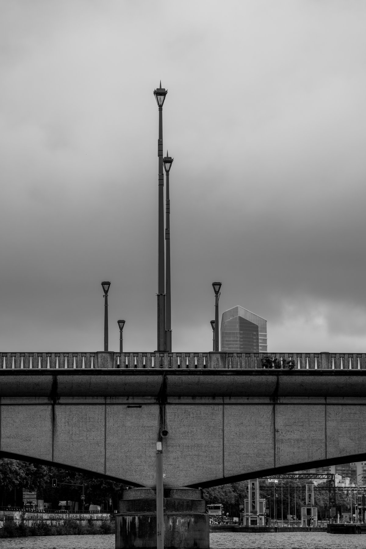 Ces résonances, je les explore à travers une série de compositions en noir et blanc. Chaque photographie est née de la rencontre de deux photographies, révélant une réalité autre, faite de correspondances et d’échos. Le noir et blanc s’impose comme une évidence, ouvrant un espace où la densité d’un ciel, la vibration d’un reflet et la texture de l’eau deviennent langage. Certaines images s’aventurent vers l’abstraction, bulles, végétaux immergés, traces mouvantes , respirations suspendues entre deux plans du monde, révélant ce qui se devine. Ces compositions sont autant de fragments d’un lieu en métamorphose, où architecture, nature et présence humaine s’entrelacent dans un dialogue silencieux, et où le visible, peu à peu, se transforme en mémoire.