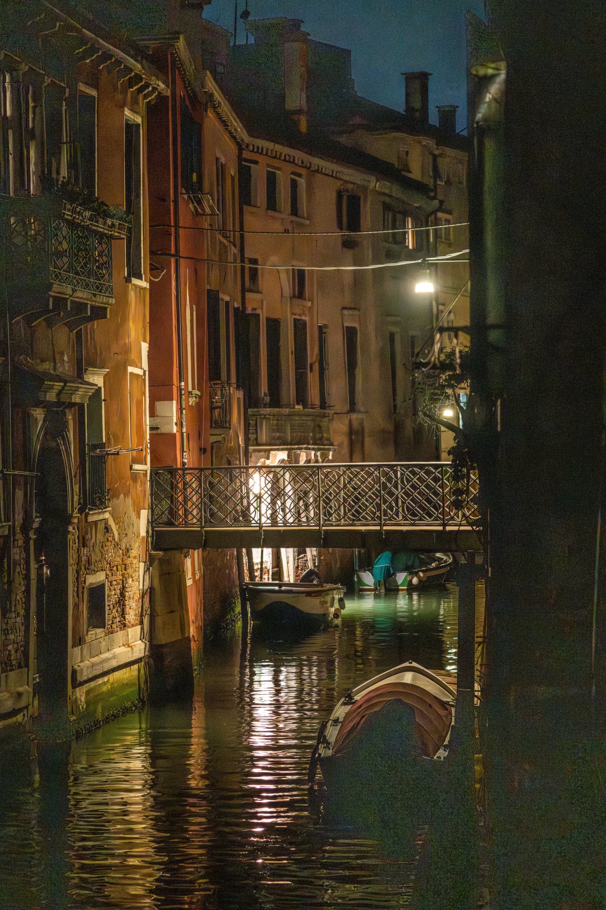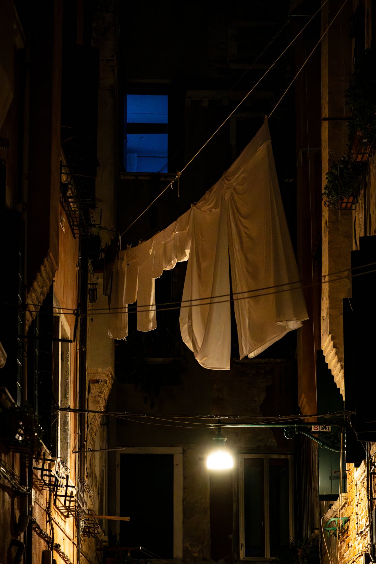 Je l’ai découverte la nuit, Venise. Enfin silencieuse, comme retenue. C’est dans ces heures tardives qu’elle se dévoile autrement, entre ombre et lumière. Les ruelles s’étirent dans une pénombre mouvante, les reflets glissent sur les canaux, et le linge suspendu apparaît comme une trace discrète de vie, suspendue dans le calme. La ville semble garder ses secrets pour ceux qui la traversent sans bruit.