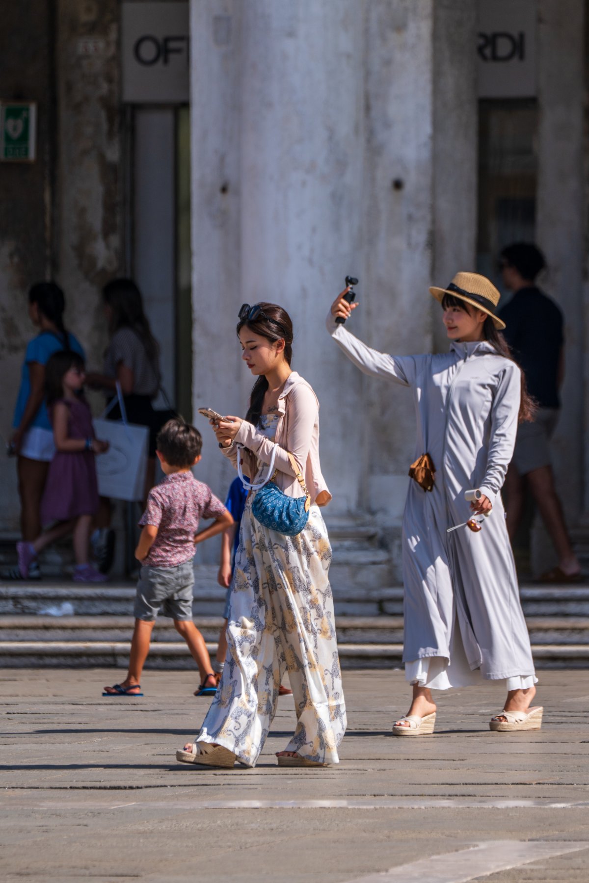 Parfois, je m’arrête. Je m’installe en terrasse, place Saint-Marc. Autour de moi, les touristes, rivés à leurs téléphones ou à leur appareil photo. Je les regarde, fascinée : eux dans la frénésie, moi dans l’attente. C’est une autre scène qui se joue, presque théâtrale, et elle aussi mérite d’être regardée.
