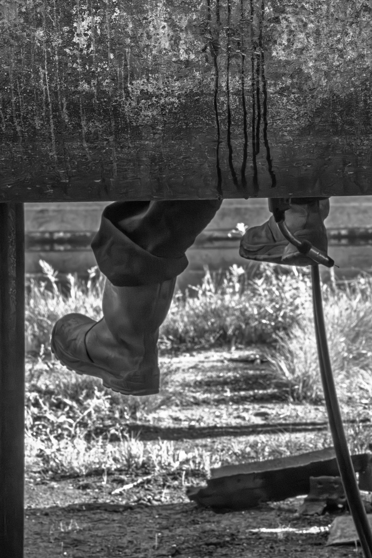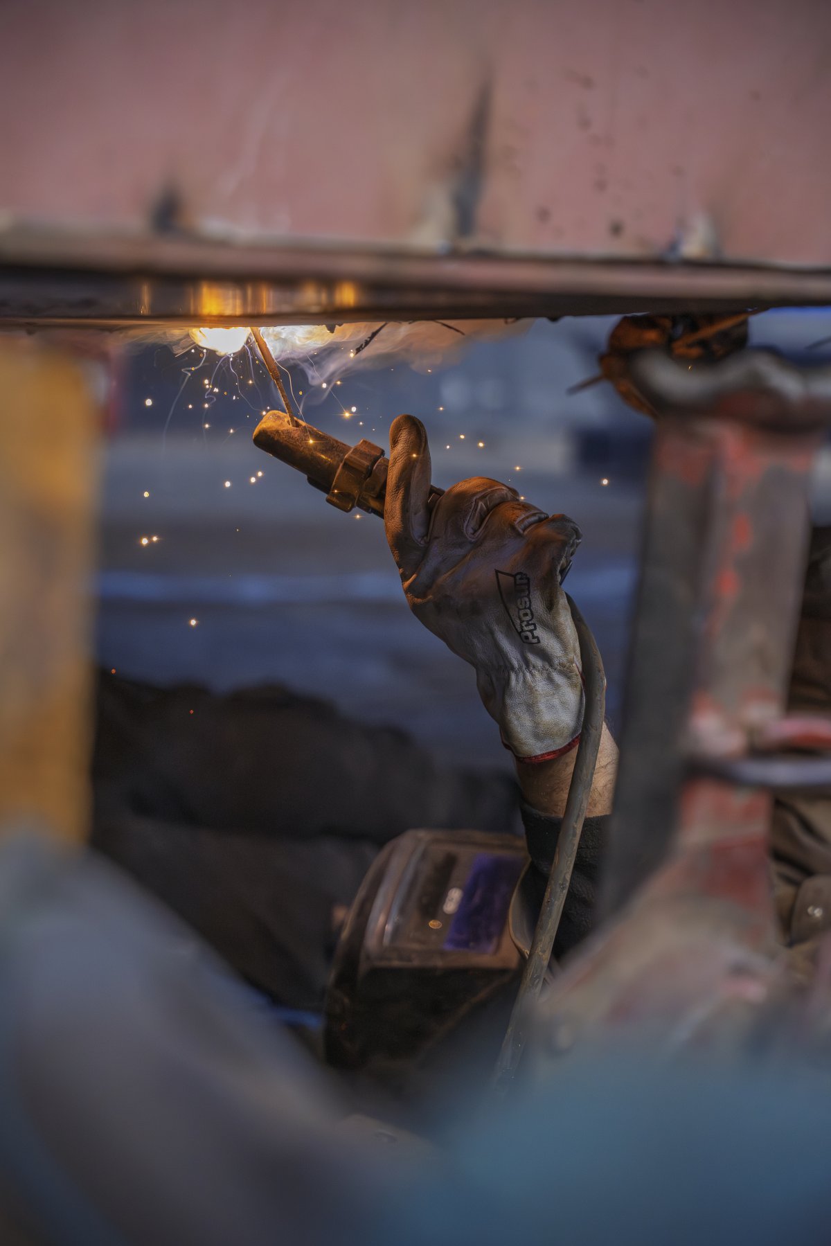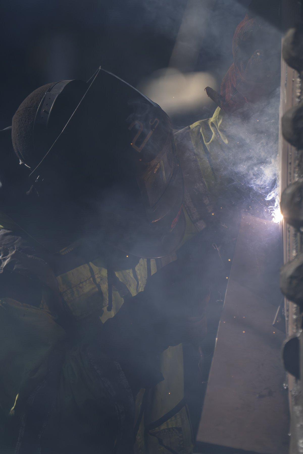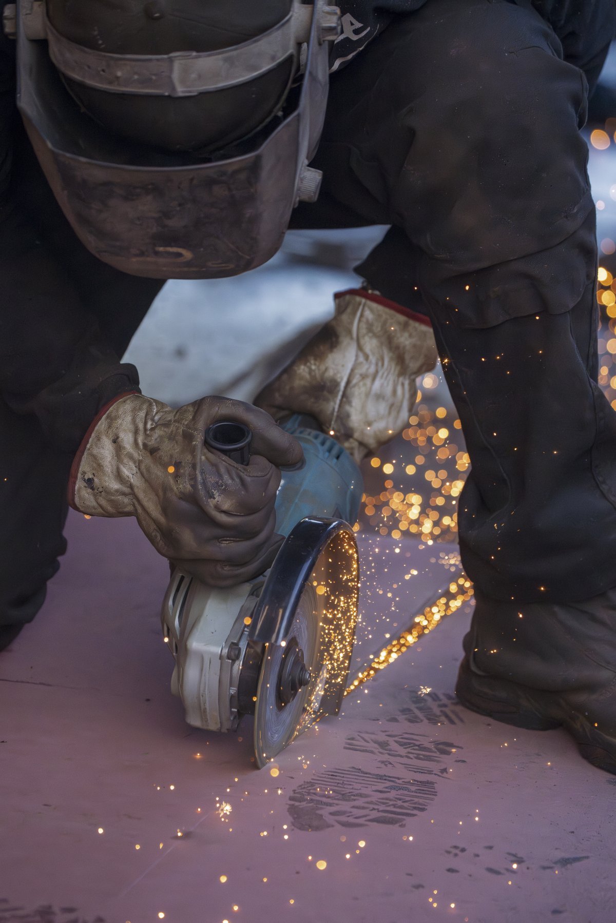 C’est un théâtre discret, une alchimie, où l’homme et le métal se mesurent, les corps, glissés sous la coque, profilées dans l’éclat des étincelles et dans la brume des fumées.
