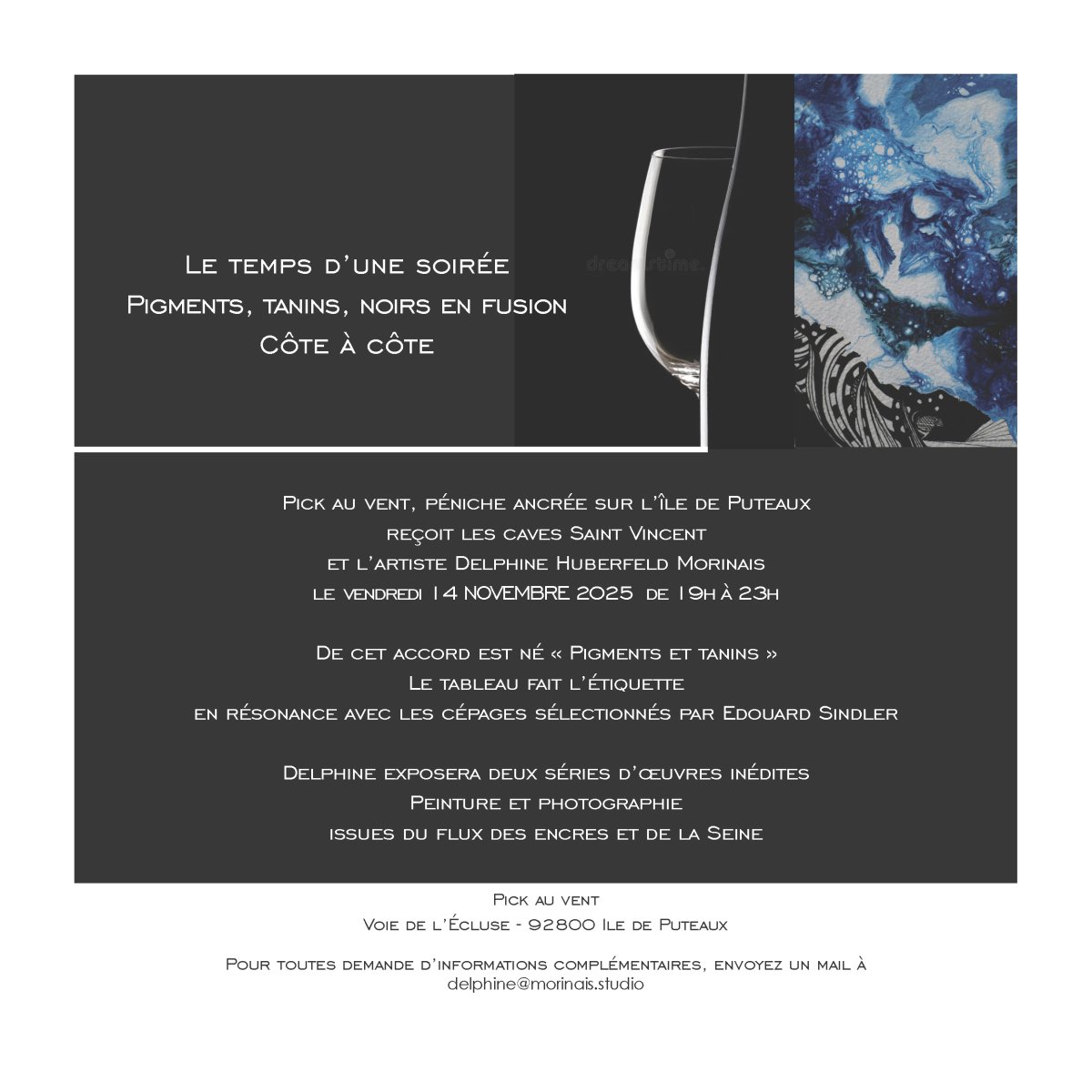 Vendredi 14 novembre 2025de 19h à 23hLe temps d’une soirée Pigments, tanins, noirs en fusion Côte à côte